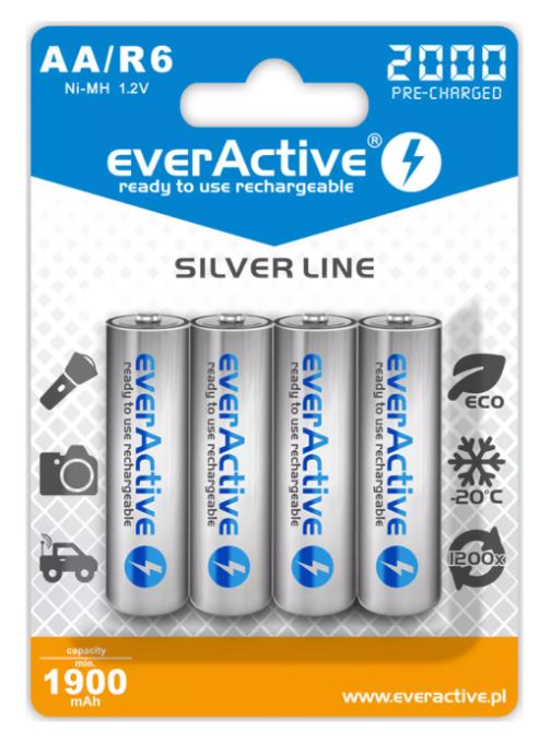 As baterias recarregáveis everActive Silver Line EVHRL6-2000 oferecem elevada capacidade e desempenho fiável para utilização diária. Com 2000mAh (mínimo garantido de 1900mAh), são perfeitas para câmaras fotográficas, brinquedos, comandos, lanternas, acessórios eletrónicos e qualquer equipamento que exija energia constante e duradoura.