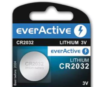 A pilha de lítio everActive CR2032 oferece energia estável, potente e de longa duração para uma vasta gama de pequenos dispositivos eletrónicos. Ideal para relógios, comandos automóveis, balanças digitais, calculadoras, brinquedos, monitores de fitness e outros equipamentos que requerem fiabilidade absoluta.
